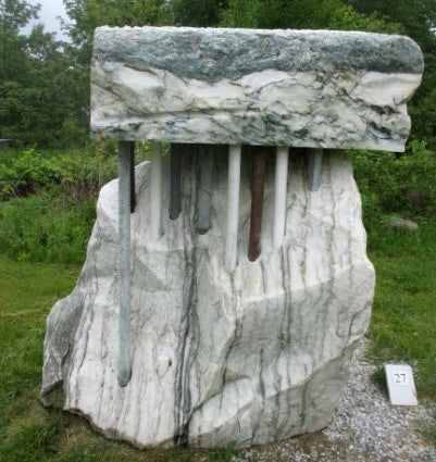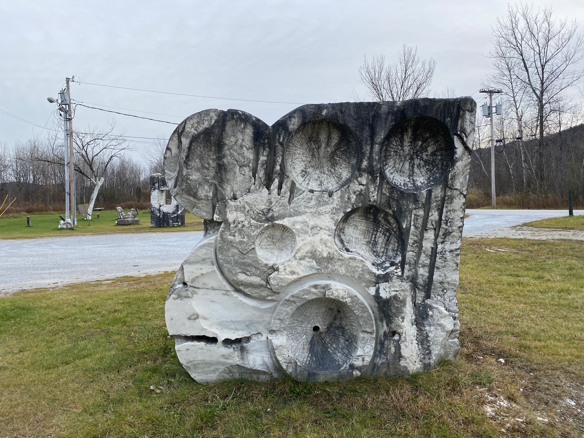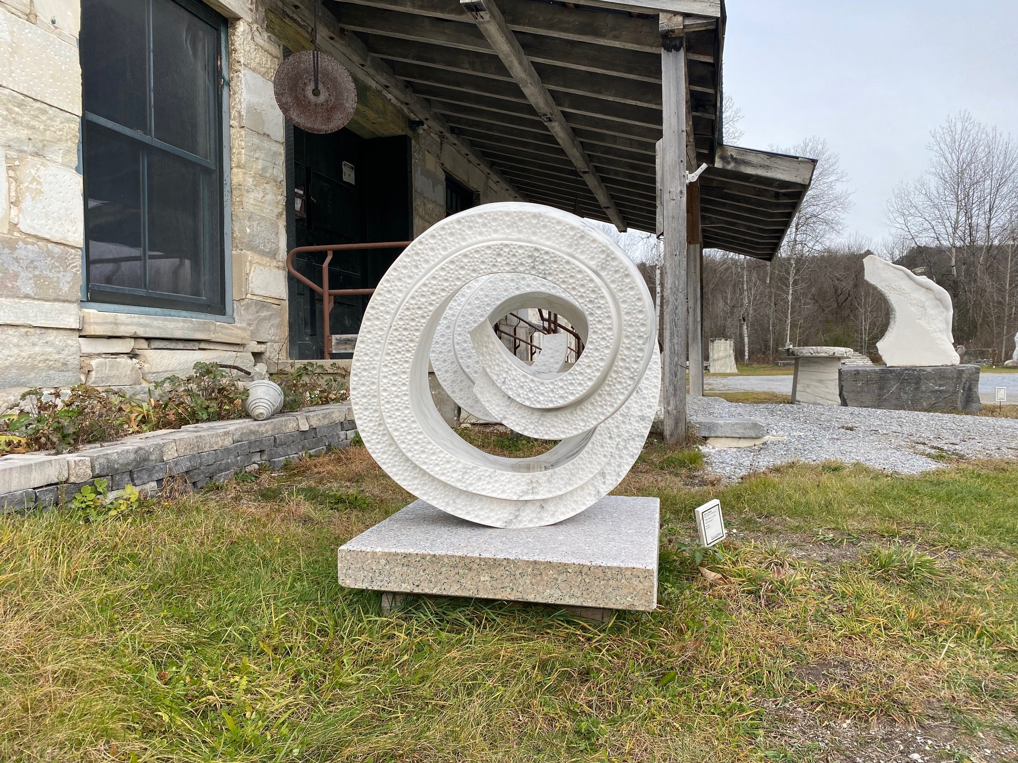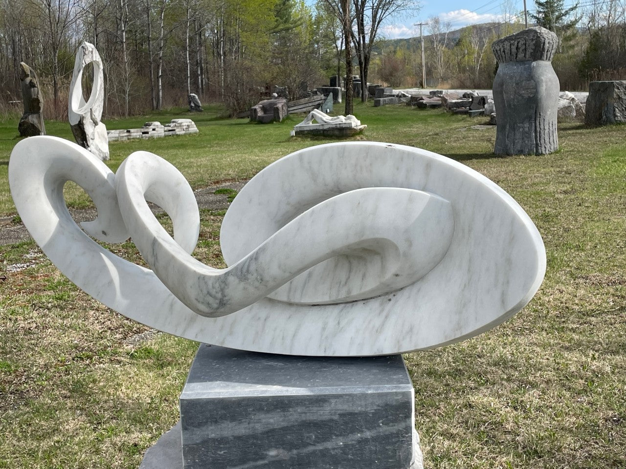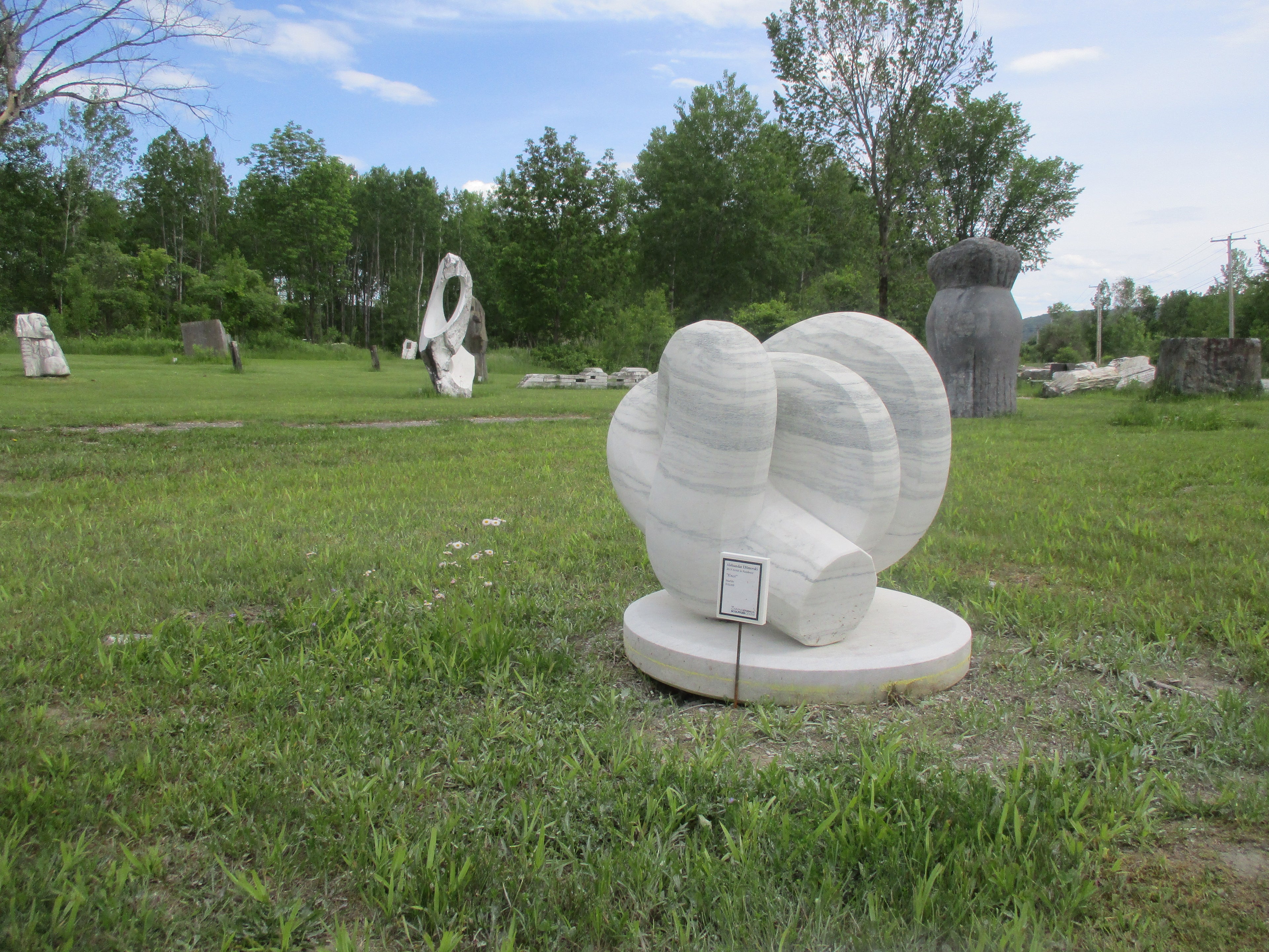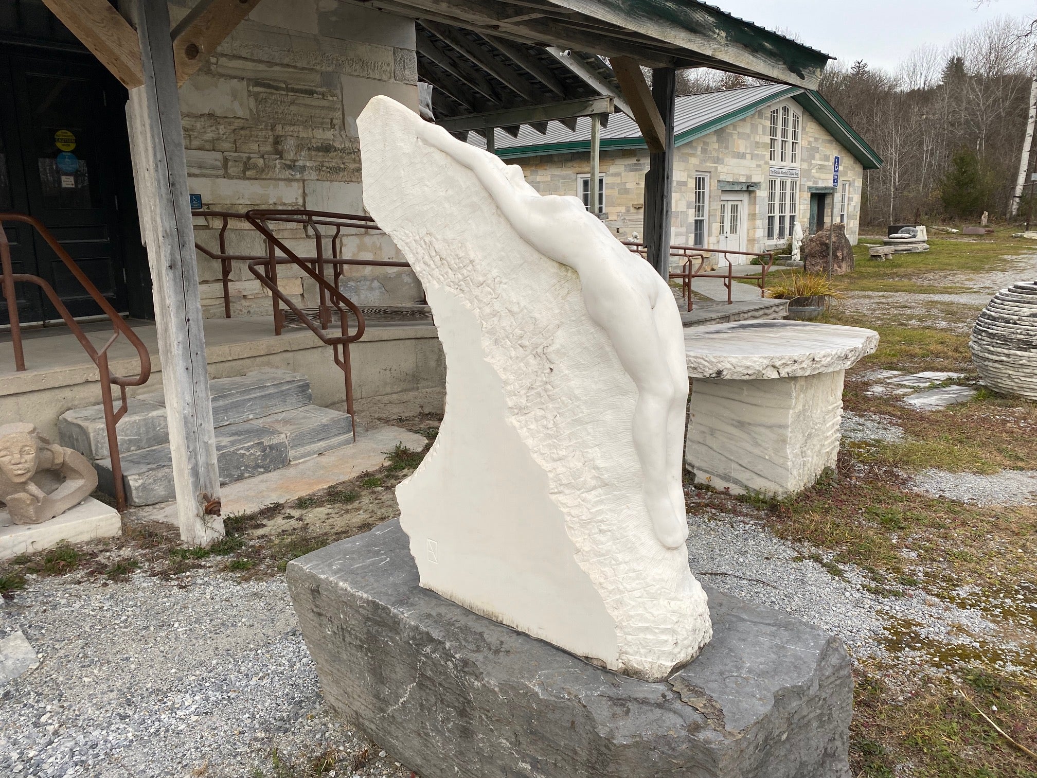 The Sculpture Garden is a celebration of three-dimensional art and, in particular, Vermont marble. The Sculpture Garden provides not only a tranquil viewing space, but also a thought-provoking collection of work, with new pieces added each year. The Sculpture Garden has grown to include a .36 mile forested walking trail, completed in November 2022. SculptFest23 was the first exhibition featured along the forested trail, with 10 site-specific works installed among the marble industrial remains found along the path.